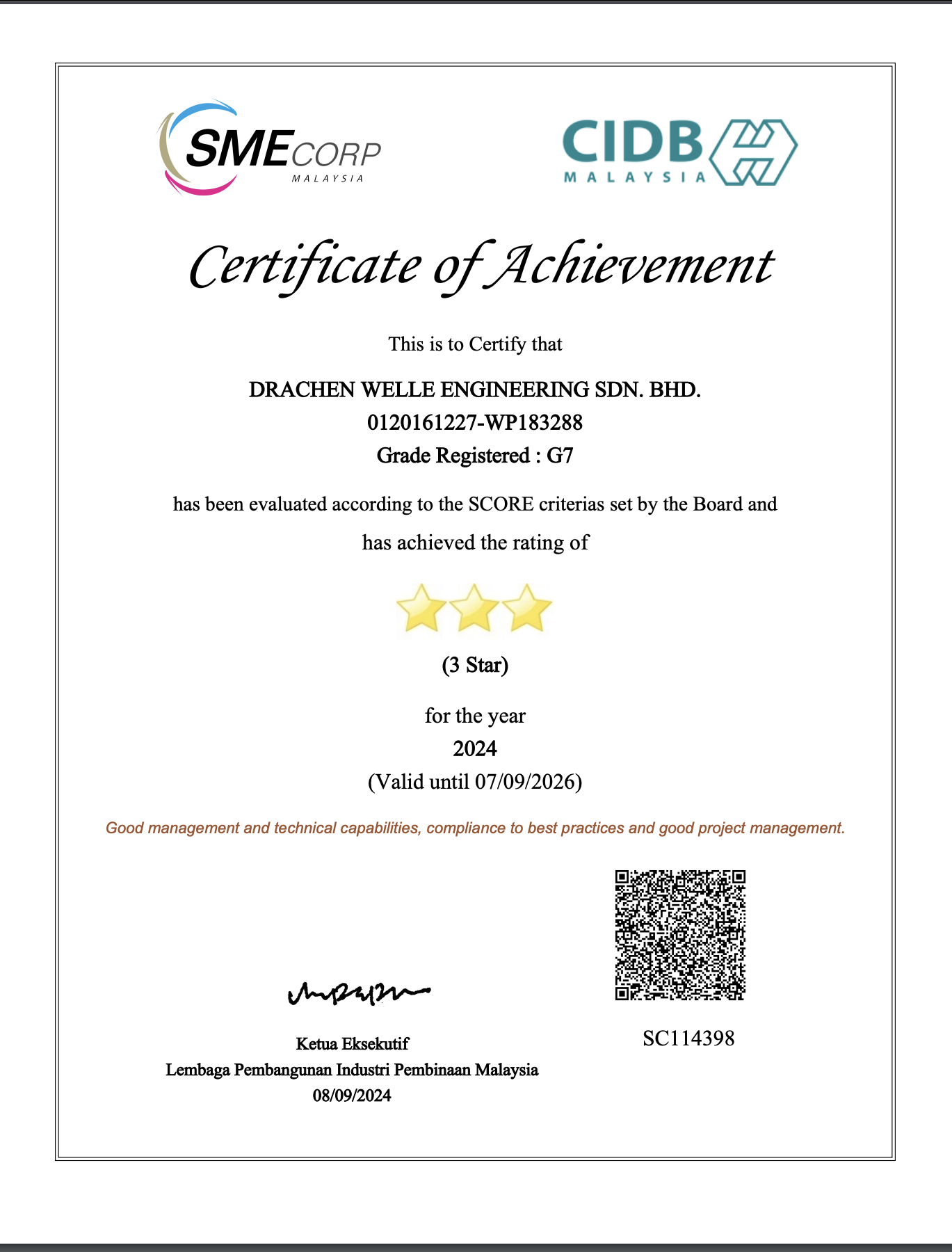 DWE Awarded Good SCORE Rating as a G7 Company by CIDB